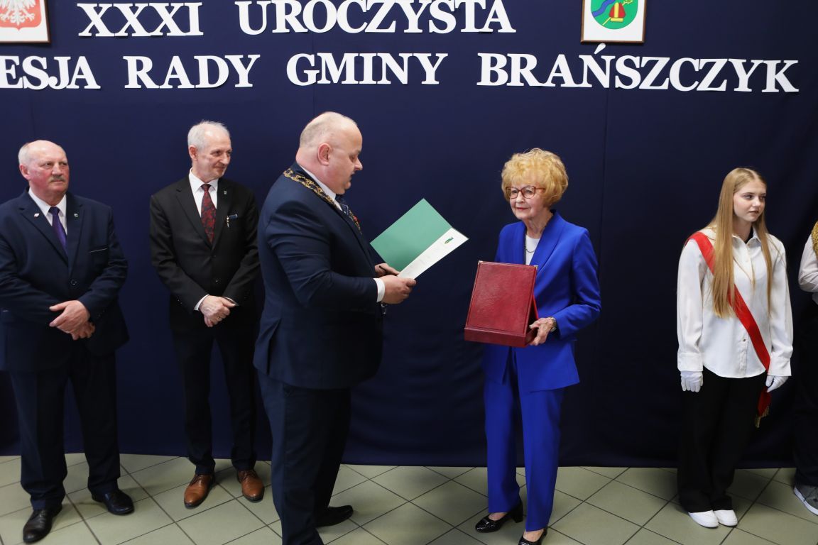 Przyznany przez radę gminy tytuł Honorowego Obywatelstwa Gminy Brańszczyk Barbarze Dubniak wręczyli wójt Wiesław Przybylski, przewodniczący rady Andrzej Skłucki i wiceprzewodniczący Sławomir Gałązka. Honorowa Obywatelka wyróżnienie przyjęła z ogromną wdzięcznością i wyraźnym wzruszeniem.